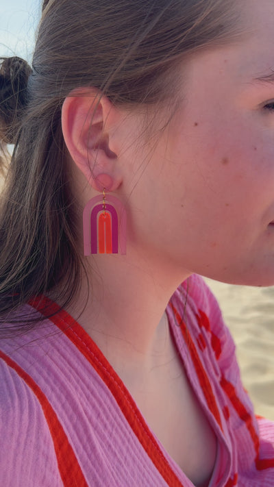 Ces boucles d'oreilles légères sont présentées sur une élégante carte en papier Gmund, ornée d'une impression risographique réalisée avec soin. Elles constituent ainsi un accessoire raffiné, mais aussi une petite œuvre d'art, idéale à offrir ou à s'offrir. Les boucles d'oreilles sont en acrylique aux couleurs éclatantes, et les tiges en acier inoxydable doré, hypoallergénique.