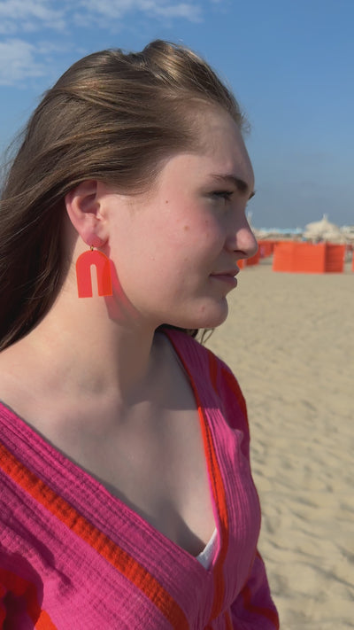 Ces boucles d'oreilles légères sont présentées sur une élégante carte en papier Gmund, ornée d'une impression risographique réalisée avec soin. Elles constituent ainsi un accessoire raffiné, mais aussi une petite œuvre d'art, idéale à offrir ou à s'offrir. Les boucles d'oreilles sont en acrylique aux couleurs éclatantes, et les tiges en acier inoxydable doré, hypoallergénique.
