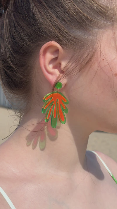 Ces boucles d'oreilles légères sont présentées sur une élégante carte en papier Gmund, ornée d'une impression risographique réalisée avec soin. Elles constituent ainsi un accessoire raffiné, mais aussi une petite œuvre d'art, idéale à offrir ou à s'offrir. Les boucles d'oreilles sont en acrylique aux couleurs éclatantes, et les tiges en acier inoxydable doré, hypoallergénique.